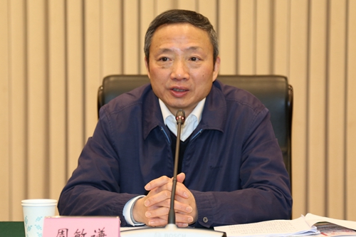 四川省台办主任周敏谦在随后召开的全省台办主任座谈会上总结安排工作。。(图片来源:四川省台办)