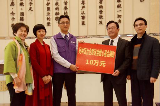 市台协会及各分会常年来积极助力台商推动公益事业发展,营造良好的社会氛围。除了设立“吴中区台企联谊会爱心基金”外,市台协会会长高国伦在苏州大学设立“台协会长奖学金”,园区台协会每年对十名特困家庭孩童进行定向助学及慰问,高新区台协会举办“跳蚤市场爱心义卖”,姑苏区台协会定期慰问越溪福利院和苏州市福利院。台商与公益的联系已深入人心。(许 晴)