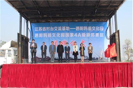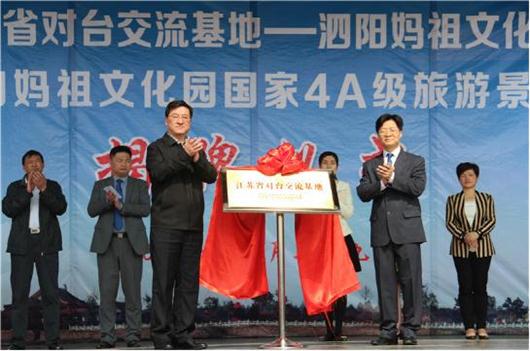 图为泗阳妈祖文化园“江苏省对台交流基地”揭牌现场。