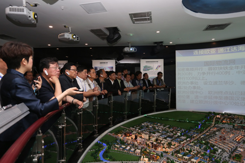在成都青白江区考察亚洲最大的成都铁路集装箱中心站、国际集装箱物流园区、成都国际铁路港、成都铁路口岸等发展建设情况,了解蓉欧快铁物流运输等情况,探讨蓉欧快铁带来的商机。