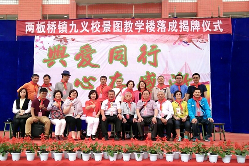两板桥镇九义校教学楼是台胞游景图、游象庆先生一家继2013年捐资272万元修建两板桥镇碑湾村景图希望小学后,再次捐资578万元为两板桥镇九义校修建的综合性教学楼。该教学楼有24间教室,8间办公室,建筑面积2746平方米。该教学楼的建成,有效地改善了两板桥镇及附近乡镇适龄儿童就学环境。(中国台湾网、资阳市台办联合报道)
