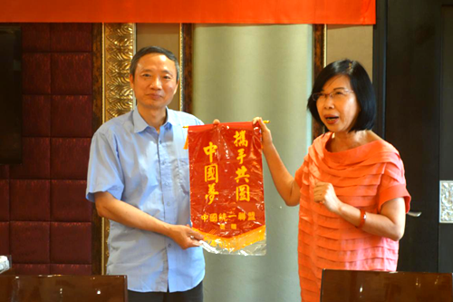 四川省台办主任周敏谦(左)与“台湾中国统一联盟”妇女部主任宋元女士合影。(图片来源:四川省台联)
