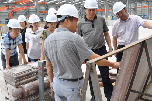 张军副主任(右二)一行在朝天区中子国际石材城调研