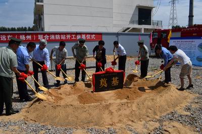 图为扬州化工园区远东联合消防站奠基仪式现场。