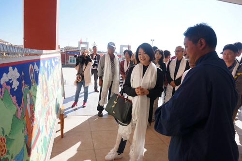 中国台湾网8月25日阿坝讯 8月17日,参加“2016巴蜀文化周”活动的台湾民意代表马文君女士和南投县五育中学、暨大附中师生代表60人前往阿坝州红原县,与红原藏文寄宿制中学师生交流互动。红原县副县长泽旺措陪同参访。