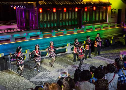 联欢交流活动在融合两岸地域风情的舞蹈《高山青·茉莉情》中拉开序幕。整场活动以“千里共婵娟”为主题,分为邀月、赏月、吟月、月圆四个篇章,节目设置丰富多彩、特色鲜明。杂技《美食泰州》将泰州美食与传统杂技结合,在传统中充满创新;传统文化表演《梅花三弄》将古琴、书法、绘画、面塑、根雕、木雕等传统艺术和非物质文化遗产融为一体,体现了泰州悠久的历史文化传承;京剧《梨花颂》充分展现了泰州作为京剧大师梅兰芳故乡的深厚底蕴。台湾客人也带来了舞蹈《手牵手、心连心、庆中秋》、客家民谣演唱、健身武术等精彩节目。现场还设计了猜灯谜、品月饼、放许愿荷花灯等互动环节,烘托了浓浓的中秋氛围。