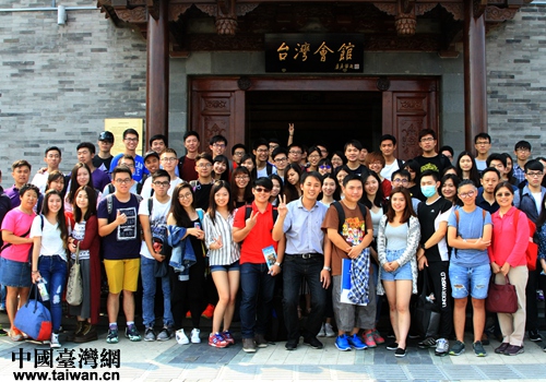 台生在台湾会馆门口合影留念。(图片来源:北京台联)
