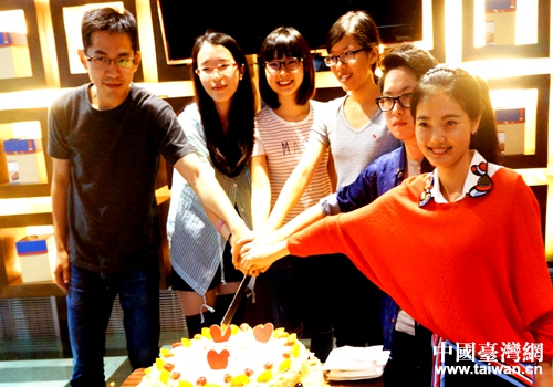 当月生日的台生一起切蛋糕。(图片来源:北京台联)