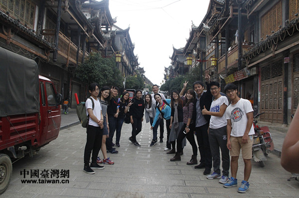 两岸青年在古香古色的街道开心街拍。(中国台湾网 王亚静 摄)