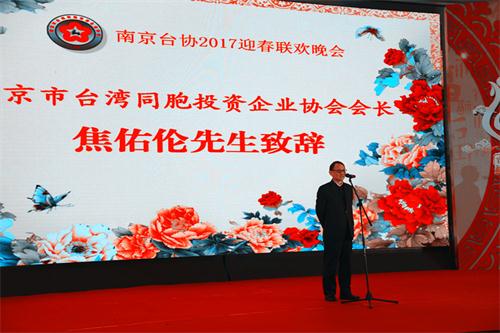 南京市台协会长焦佑伦代表协会感谢市委、市政府和省、市台办及顾问单位对台协的关心和支持,表示将继续秉持宗旨,突出宁台经贸合作,深入做好在宁台企服务工作,也请市委、市政府一如既往关心支持台协和在宁台资企业的发展!