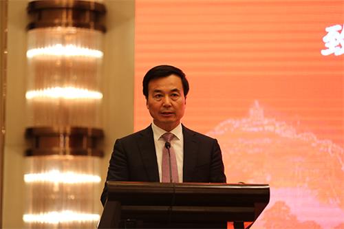 图为南通市人民政府副市长徐新民在恳谈会上致辞。