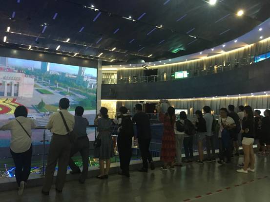 在市展览馆,同学们通过馆内生态数码墙、数字沙盘、弧幕影院等现代光电技术手段,了解了东营的城市发展史,感受到了东营的城市魅力。