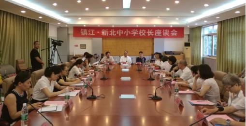 交流座谈会,有来自镇江新北两地20多位中小学校长参加,镇江市教育局国际交流中心主任张国俊主持,新北市教育交流团团长蔡叶伟、市台办副主任许德华等出席。