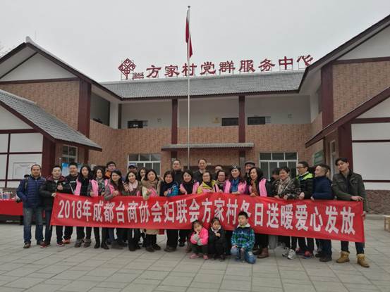 中国台湾网1月29日成都讯 1月20日,在成都市台办的联系指导下,成都台协妇联会会长詹玉满带领妇联会主要成员及台商志愿者约40人,前往成都简阳市飞龙乡方家村开展冬日送暖活动,向方家村68户困难户发放了冬被、大米、腊肉等食品和生活用品,捐赠物资金额达3.8万元。成都市台办机关党委书记王挺峰及秘书处、法规处负责同志全程参与了该活动,飞龙乡党委政府和村两委积极做好相关配合工作。