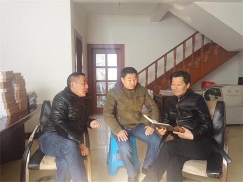 图为高邮市台办工作人员和金贵发大陆亲属核实相关情况。