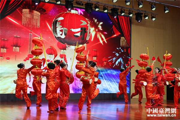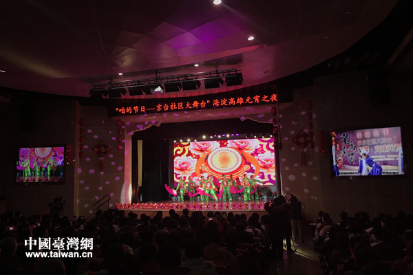 北京海淀区苏家坨镇和高雄市恒春镇进行视频连线,欢度元宵。图为苏家坨镇表演开场舞蹈《张灯结彩》,“点燃”两地现场氛围。(中国台湾网 郜利敏 摄)