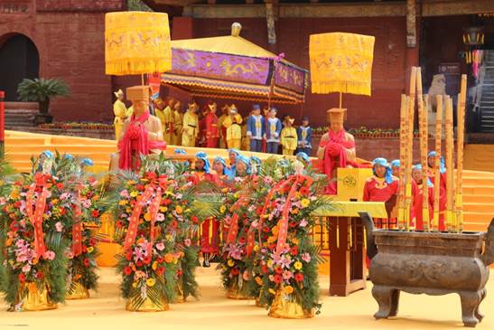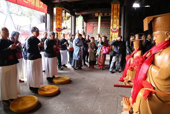恭请仪式上,来自台湾地区高雄仙公庙、赤崁天公庙等人员,按照道教科仪制度,依照“起驾”、“出宫”、“送驾”和 “接驾”等仪式,恭请6尊文昌神像。同时,台湾代表与梓潼文昌祖庭代表还互换神磬、互赠礼物,体现出两岸文化同根同源,一脉相承,弘扬优秀的传统中华文化。