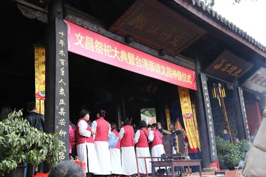 梓潼七曲山大庙被誉为天下文昌宫的祖庭,是被公认的中华文昌文化发祥地,其博大精深的文化内涵深受海内外中华儿女敬仰,成为中华民族传统文化的重要组成部分。每逢文昌君诞辰,为进一步增进两岸同文同种、同根同源的情感认同,文昌祖庭都会广邀两岸嘉宾举行盛大的“三献礼”仪式,表达对文昌君的虔诚。在台湾,文昌文化作为国学文化的传承而深入人心。据不完全统计,台湾现有保存完好的文昌宫40余座,供奉文昌君神像宫庙10余座。