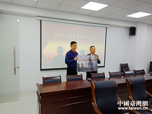 泉州市台办副主任李朝晖向园区管委会授牌。(图片来源:安溪县台办)