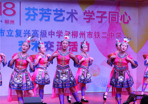 复兴高中师生们在柳铁二中老师同学们陪伴下,参观该校书画工作室、古筝工作室、书画馆,并到学校艺术中心参观器乐、声乐、播音、戏剧、舞蹈专业功能室展示和运动区体育专业训练。柳铁二中校长覃桂宁介绍了柳铁二中校园文化营造、课程设置、校舍建设、办学特色等情况。两校同学们用不同乐器演奏出动听的旋律,用优美的舞姿展现艺术的魅力,还交换纪念礼物,互加微信,共叙友谊。