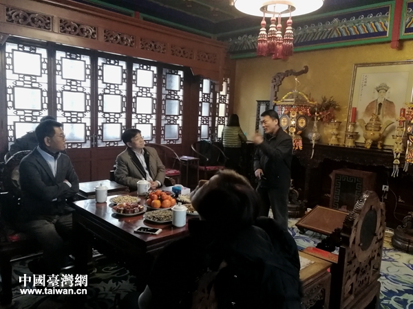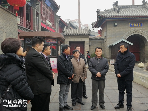 中国台湾网4月3日天津讯 日前,台湾维格饼家董事长孙国华率台湾文创、科技、贸易等领域企业负责人到南开区参访交流。市台办副主任于为忠、南开区副区长徐辉在海峡两岸交流基地——天津天后宫接待参访团一行,并就刚刚出台的《关于促进两岸经济文化交流合作的若干措施》(简称“31条措施”)以及妈祖文化与文创产业融合发展进行深度交流,征求台商们的意见建议。南开区有关单位负责同志参加活动。