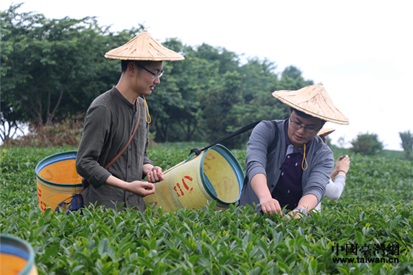 寻茶之旅团成员体验“采茶”。(中国台湾网 郜利敏 摄)