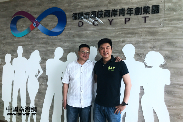 园区负责人许渊顺与成都麦联设计董事总经理张荣华在园区合影。(中国台湾网 赵苗青 摄)