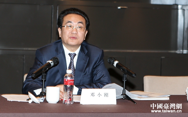 中共四川省委副书记邓小刚在座谈会上讲话。(图片来源:四川省台办)