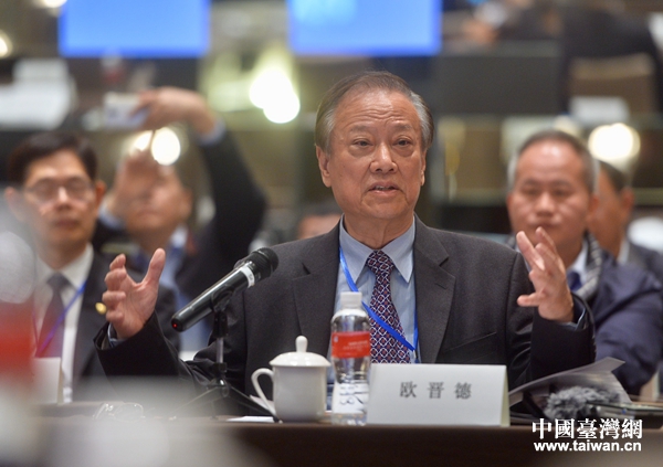“5·12”地震台湾救援队队长欧晋德在会上发言。(图片来源:四川省台办)