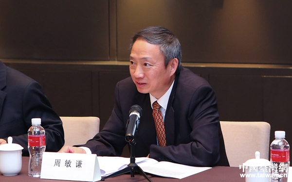 四川省台办主任周敏谦主持座谈会。(图片来源:四川省台办)