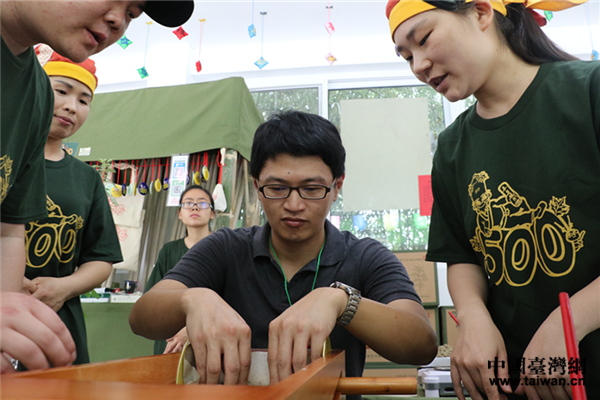 学习制作艾条。(中国台湾网 郜利敏 摄)