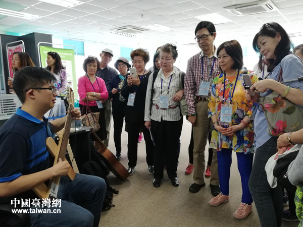 德阳青创园内台湾青年设计的便携式吉他吸引了参访团的注意。(图片来源:四川省台联)