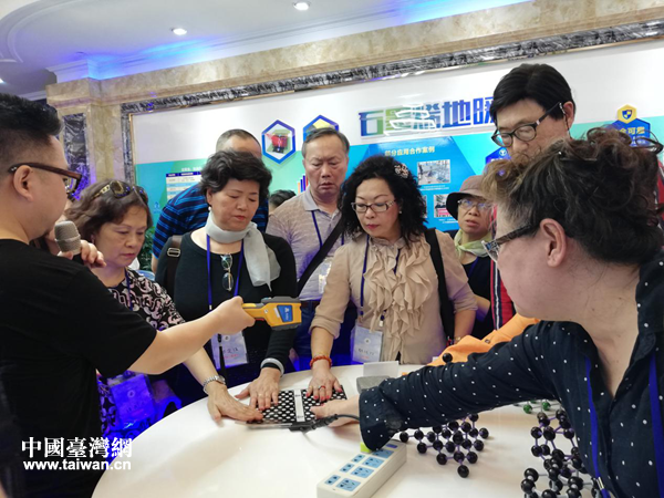 参访团在夹江盛世东方陶瓷公司感受石墨烯地暖瓷砖高科技。(图片来源:四川省台联)