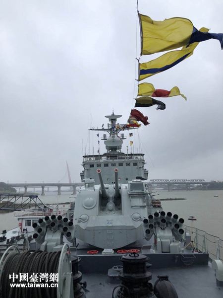 舰上八一军旗迎风飘扬。(中国台湾网 许秋玥 摄)