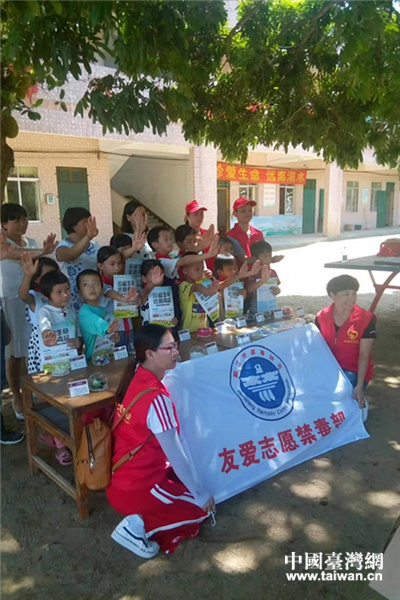 中国台湾网6月7日阳江讯 “六·一”儿童节期间,在阳江市阳东区经营生产五金制品的台商陈荣樑,参加了广东省阳江市禁毒协会组织的“共筑中国梦,关爱青少年”活动,热心为社会服务,受到队友的欢迎和点赞。