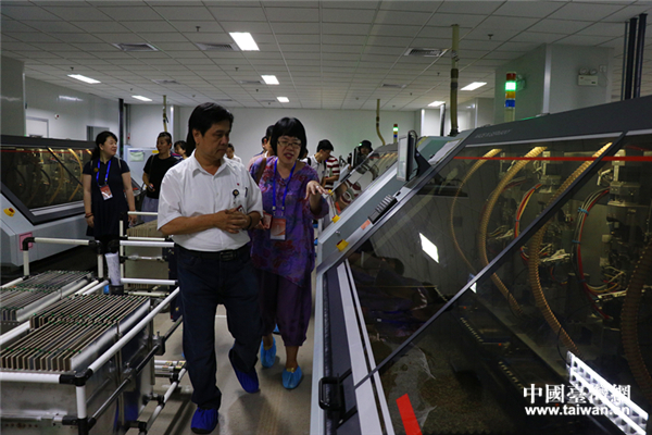 海峡两岸媒体记者参访入驻黄石的第一家台资企业——沪士电子公司。(中国台湾网 郜利敏 摄)
