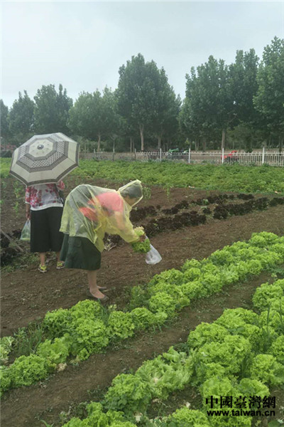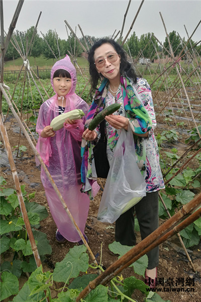 在京台胞一行徜徉生态田园风光中,赏风景、摘蔬菜、品粽子、庆端午。(中国台湾网 丁凯立 摄)