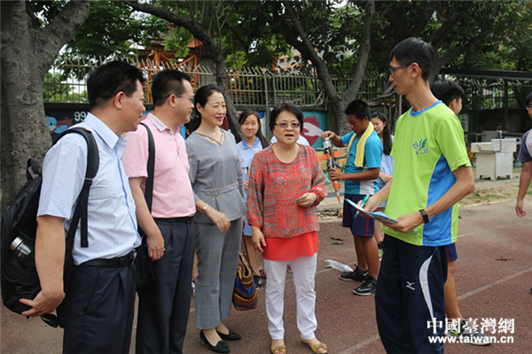 在台东县知本中学,该校同学们用当地少数民族迎宾舞欢迎考察团的到来,并邀请考察团一同载歌载舞,表达两岸一家亲的美好情谊。随后,考察团参观校园,进行座谈。知本中学对学生的家庭状况、民族、籍贯进行分类统计,在教学过程中因材施教,关注每个学生的发展,这样的管理模式为考察团提供了启发与借鉴。