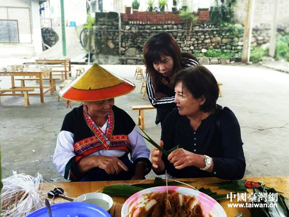 边包粽子,边拉家常。(图片来源:玉溪市台办、新平县台办)