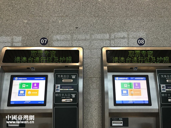 马鞍山东站设立的台胞证可自助购取票机器。(图片来源:马鞍山市台办)