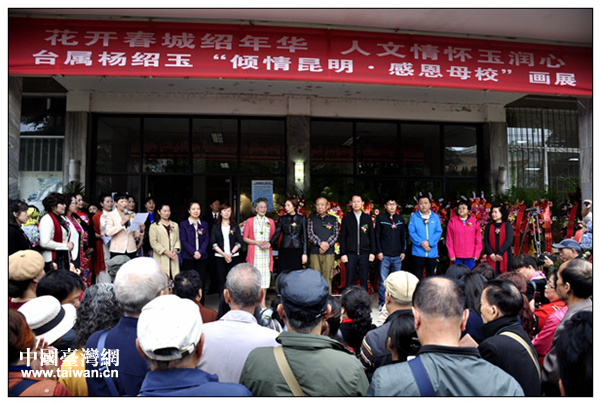 中国台湾网6月21日昆明讯 6月15日,为展示改革开放40年来昆明市台胞台属积极向上的精神面貌。昆明市台联、市美术家协会为83岁台属杨绍玉,联合主办了以“花开春城绍年华,人文情怀玉润心”为主题的倾情昆明·感恩母校画展,并在昆明学院艺术展览馆举办开展仪式。开展仪式当天,80多名台胞台属以及昆明本地市民,在画展中畅叙美好期许,感受画作背后的暖心故事。