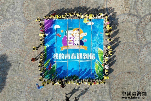 60名师生交上共同完成的绘画作品,现场高喊口号“我的青春遇见你”。(图片来源;湖南省台办 金鹰纪实 摄)