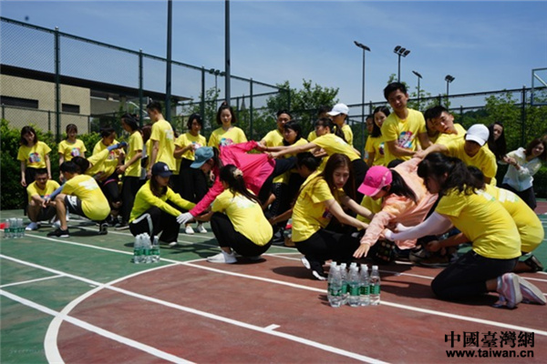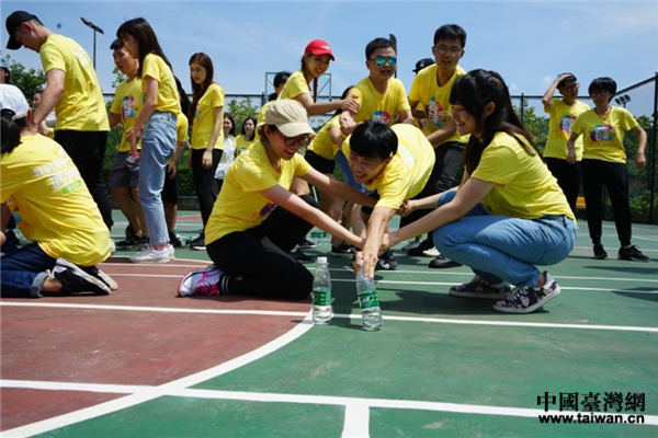 中国台湾网7月5日长沙讯 7月的骄阳跳跃着青春般热情的舞步。7月4日上午,来自台北大学、台湾大学、世新大学等22所台湾高校的50名大学生和10位来自湖南广电的老师进行一次别开生面的户外拓展训练,让实习生彼此互相了解,建立团结意识和集体观念,展示青年学生们的朝气和活力。