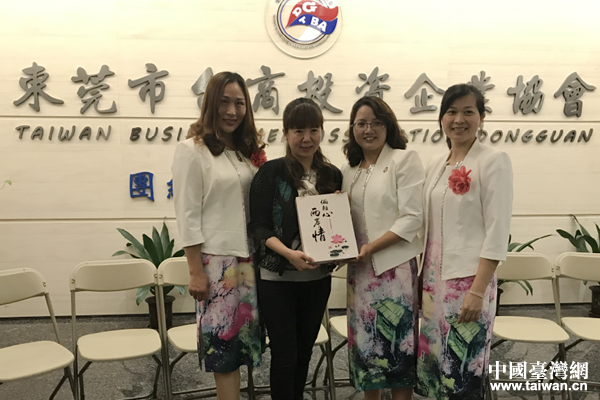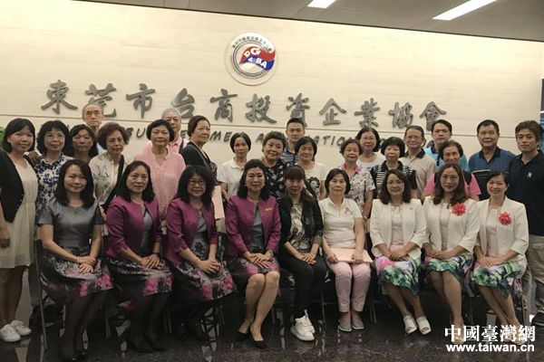中华木兰妇女交流协会与东莞市台协妇联会、东莞市台联俪雅会在东莞台商协会合照。(图片来源:东莞市台办)