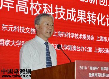中国台湾网7月9日上海讯 2018“海峡杯”两岸青年创新创业周开幕式暨两岸高校科技成果转化论坛7月8日在上海交通大学隆重举行。这是上海交通大学多年与台湾交流的传统活动,也是上海科技企业孵化器30周年的巡礼。海峡两岸关系协会秘书长马国樑,上海市政府台湾事务办公室主任李文辉,上海交通大学党委常委、副校长王伟明,上海市科学技术委员会副巡视员刘勤,台湾东元科技文教基金会副执行长苏玉枝,亚洲企业孵化协会主席、台湾中华创业育成协会理事长黄经尧等,以及来自台湾、大陆暨香港二十余所高校的育成孵化机构、大学科技园的负责人和海峡两岸三十余所高校的200余名师生出席了活动。上海交通大学港澳台办公室主任罗鹏主持了仪式。
