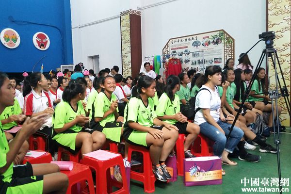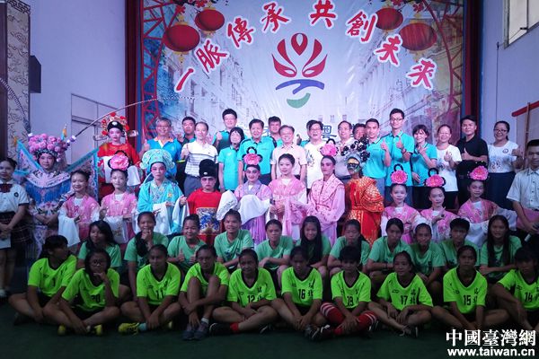 中国台湾网7月9日梧州讯 7月6日,台湾花莲县足球协会理事长陈益雄率花莲县光复中学、瑞北小学师生一行41人到广西梧州市第十一中学,参加“一脉相承 共创未来”体验“粤剧”活动。