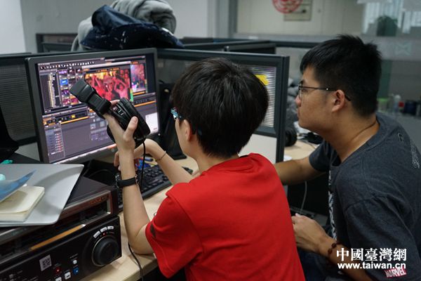 中国台湾网7月11日长沙讯 7月7日中午13:40,外边的太阳还高高挂着,娱乐频道的5名台湾实习生就已经扎进机房埋头剪辑片子了。对于他们来说后期工作的下班时间是不固定的。每个节目的后期工作人员常常会因为剪片子熬到半夜,而这种“白+黑”的工作模式也将会是台湾实习生们面临的挑战之一。