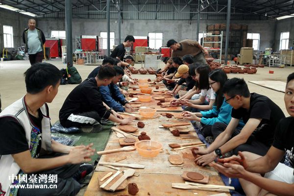 参访团亲手体验黑陶手工艺制作活动(图片来源:云南省台办)