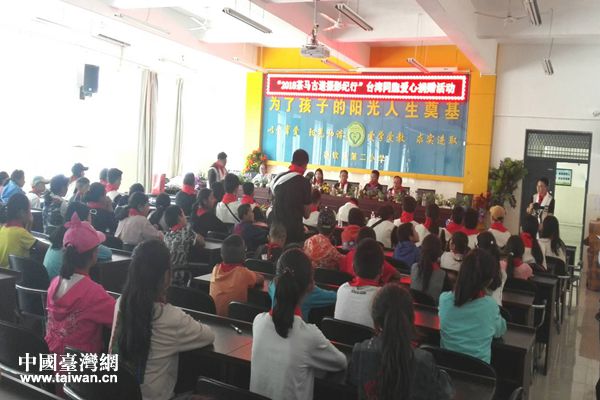 在德钦县第二小学,参访团开展捐资助学献爱心活动。(图片来源:云南省台办)