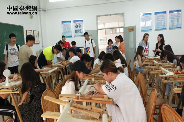 台湾青年学生学习夏布绣。(图片来源:江西省台办)